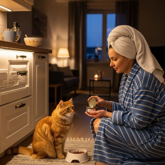 Don’t feed your cat as soon as you get up. If you do, they’ll start waking you up earlier to get food. Instead, wait until you’ve had your coffee or taken a shower before feeding them.