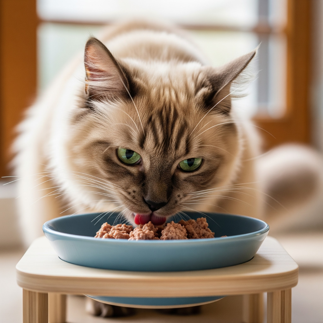 Since they can be prone to weight gain, portion control is important. Use a measuring cup and avoid free-feeding to maintain this cat breed at a healthy weight.