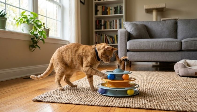 - Use interactive toys to help him burn off some energy.