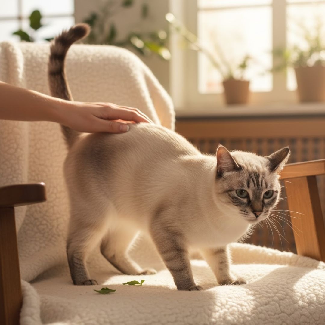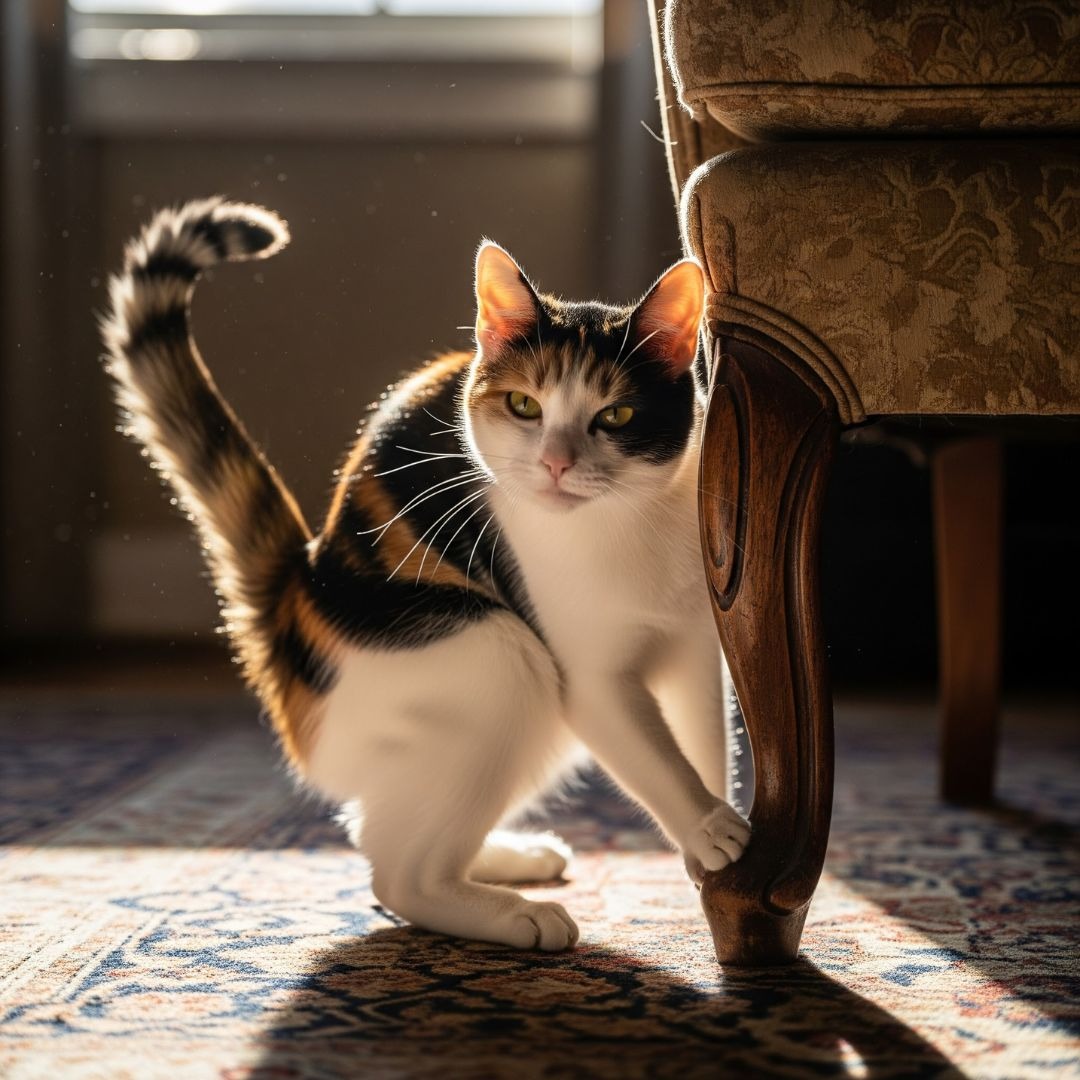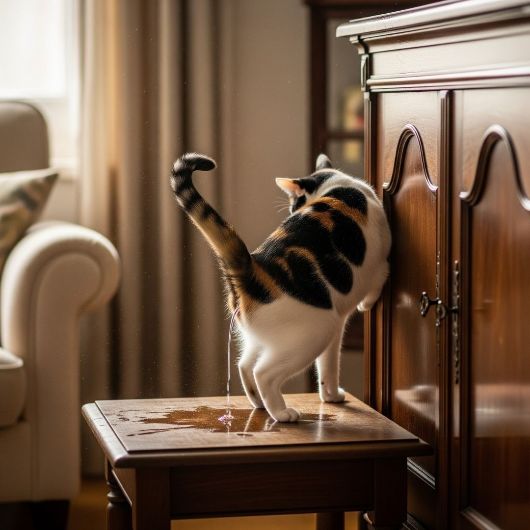 This behavior isn’t just for male cats. When in heat, a female cat may spray urine on walls or furniture. This urine is loaded with pheromones that signal her reproductive status.