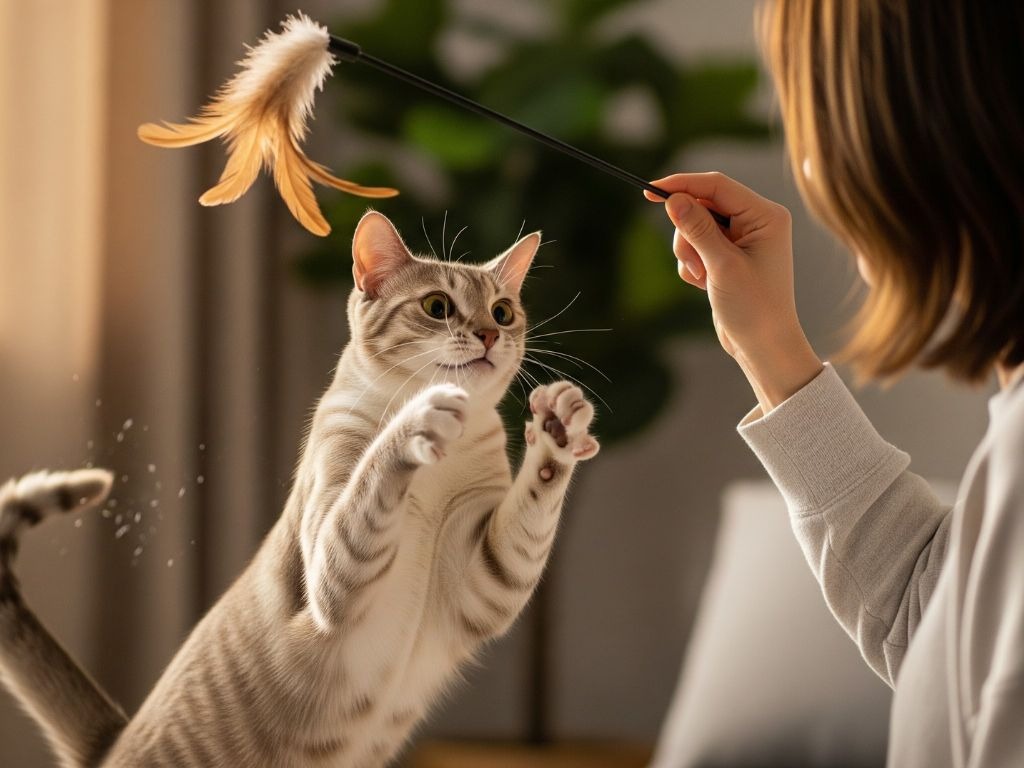 - Play, play, play. Use a feather wand or laser pointer to encourage her to run. Tiring her out physically can reduce the yowling and restlessness, at least for a little while.