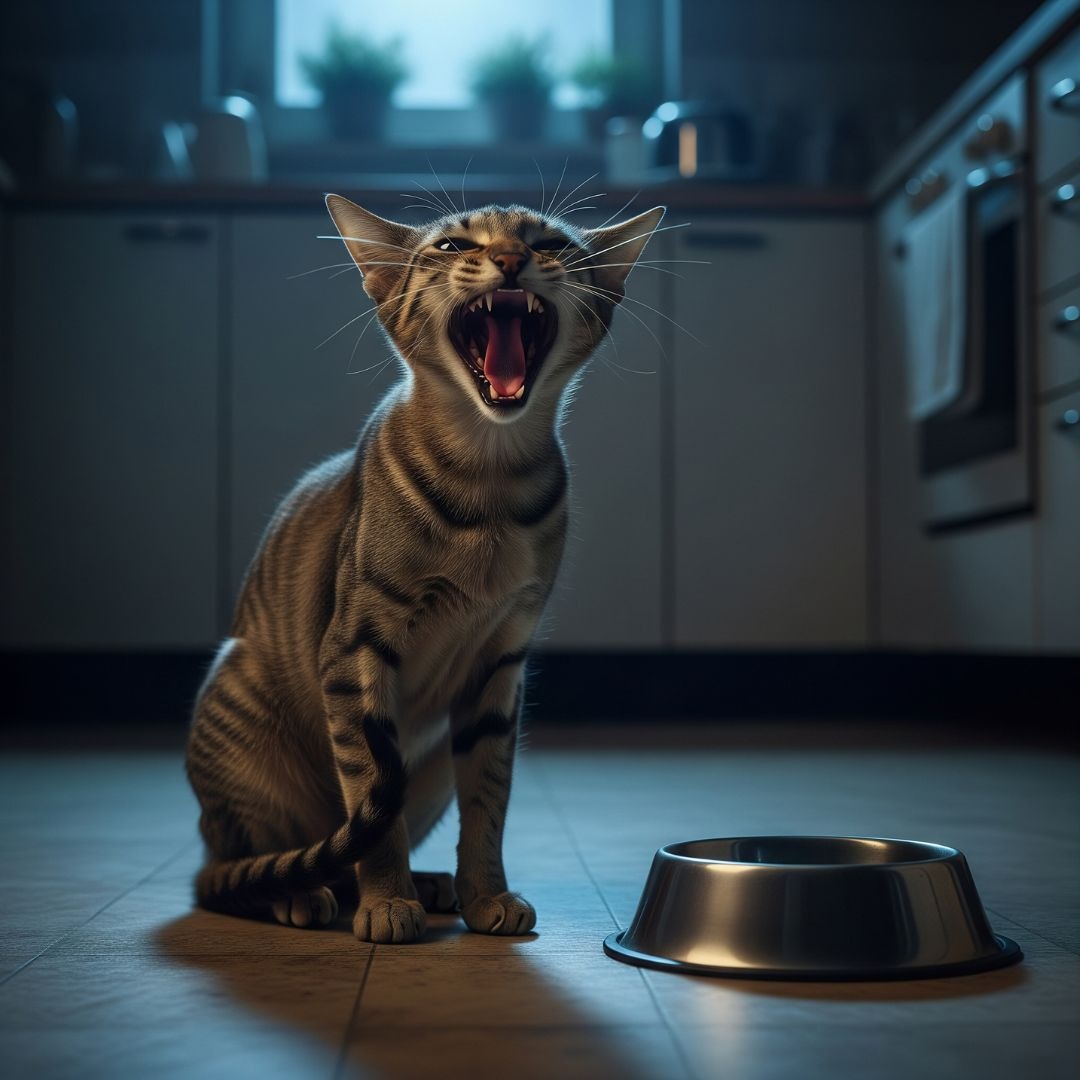 Yes, this is another very likely reason. Cats have small stomachs. They are built to eat small, frequent meals daily, rather than one or two big mealtimes. If you feed them dinner at 6 PM and then go to bed, their stomach sends hunger signals by 4 AM. That meow you hear is a direct request for a breakfast buffet.