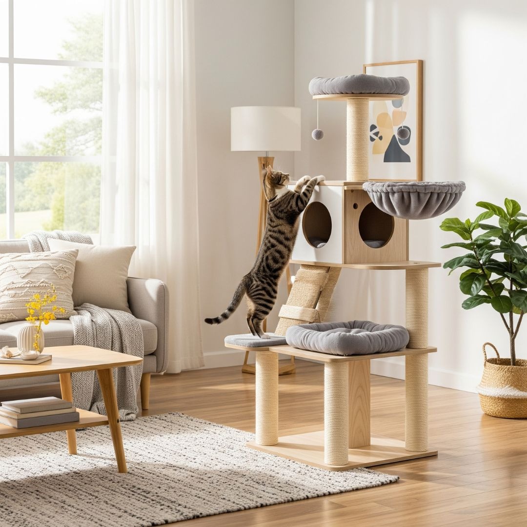 Provide food puzzles instead of a simple bowl to engage their brain and burn energy. Make sure they have window perches to watch “cat TV” (birds, squirrels). Alternatively, provide a vertical space. A good cat tree gives them a place to climb and own their territory.