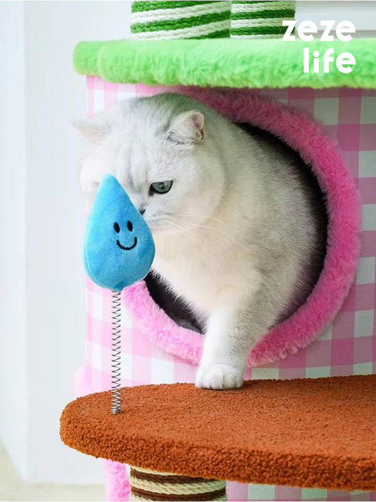 A playground inspired by a spring garden, creating a “visual dopamine experience”. This multi-functional cat climbing frame integrates a cat bed, scratching post, and hanging ball. Its sturdy, wobble-free structure provides ample jumping space to satisfy a cat’s exploratory nature.